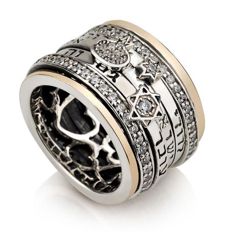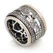 Silver 925 With 9K GOLD Spinning Thick Ring With 3 Jewish Judaica Kabbalah Verbs