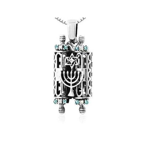 Silver 925 & Zircons Giant Massive Pendant Of OPENNING TORAH With Israel Symbols Pendant & Chain