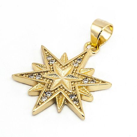 Silver 925 Zircons Gold Plated Pendant & Chain Of Holy Land Star Of Bethlehem Pendant & Chain