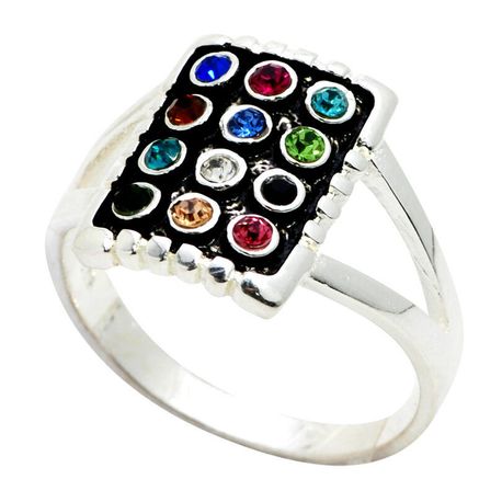 This is hand made sterling silver 925 ring, designed as the high priest breastplate (The Hoshen), inlayed with 12 colorful Swarovski crystals. Each stone symbolizes one of tribes of Israel nation.