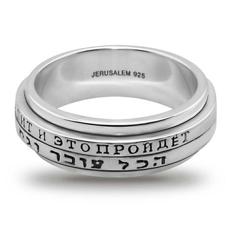 Sterling Silver 925 This Too Shall Pass Hebrew & Russian King Solomon 2 Spinning Lines Kabbalah King Solomon's Amulet Seal Talisman Ring